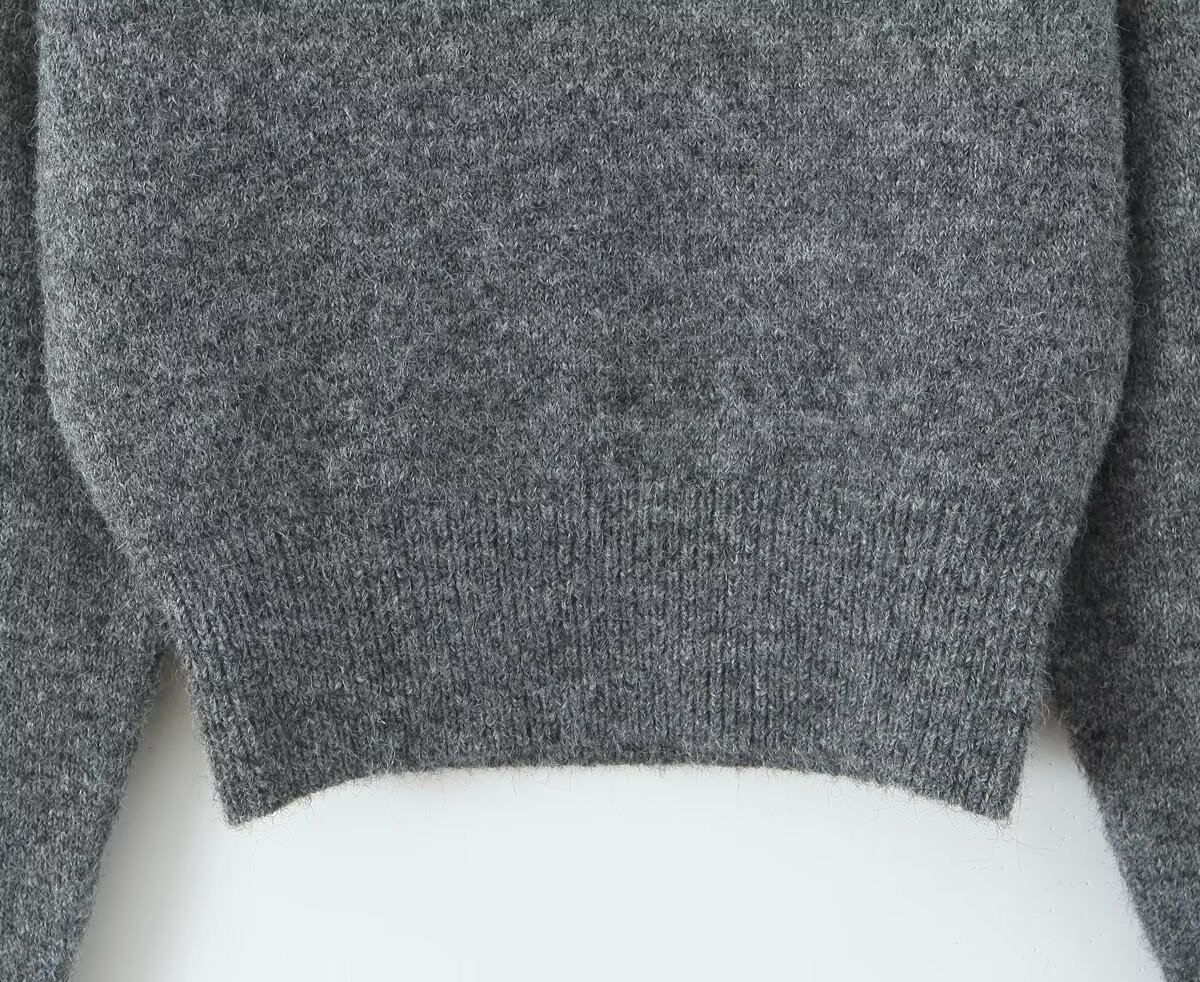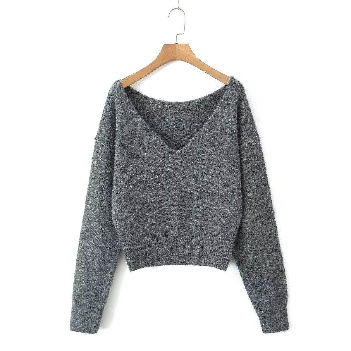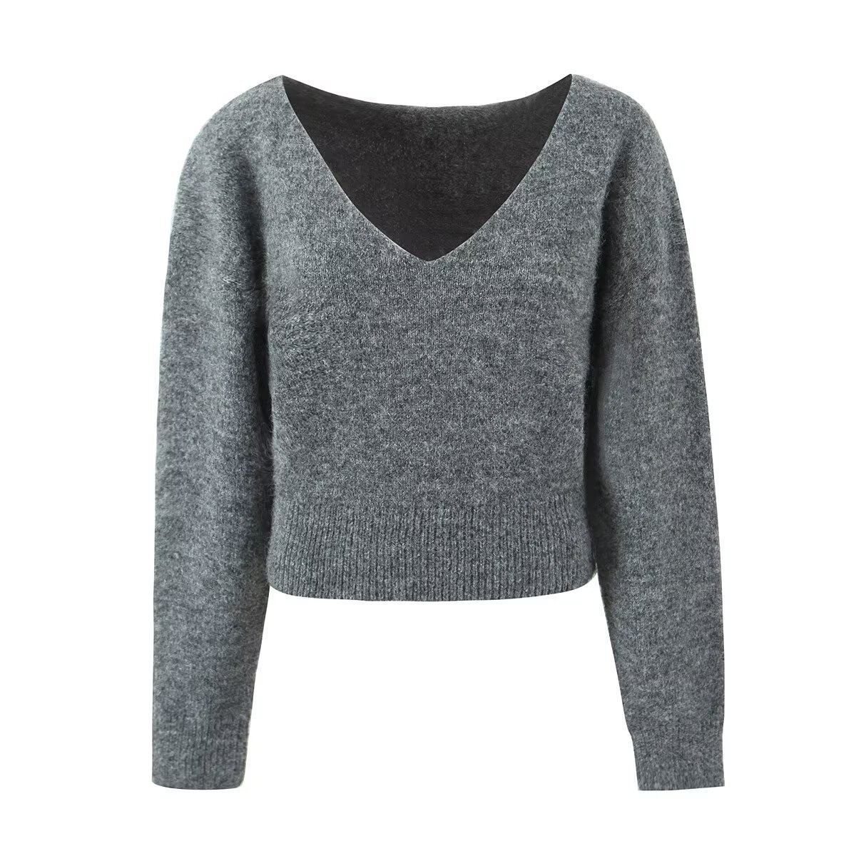 Be the first to review “Grey V-neck long sleeved knitted sweater+high waisted knitted half length long skirt set”