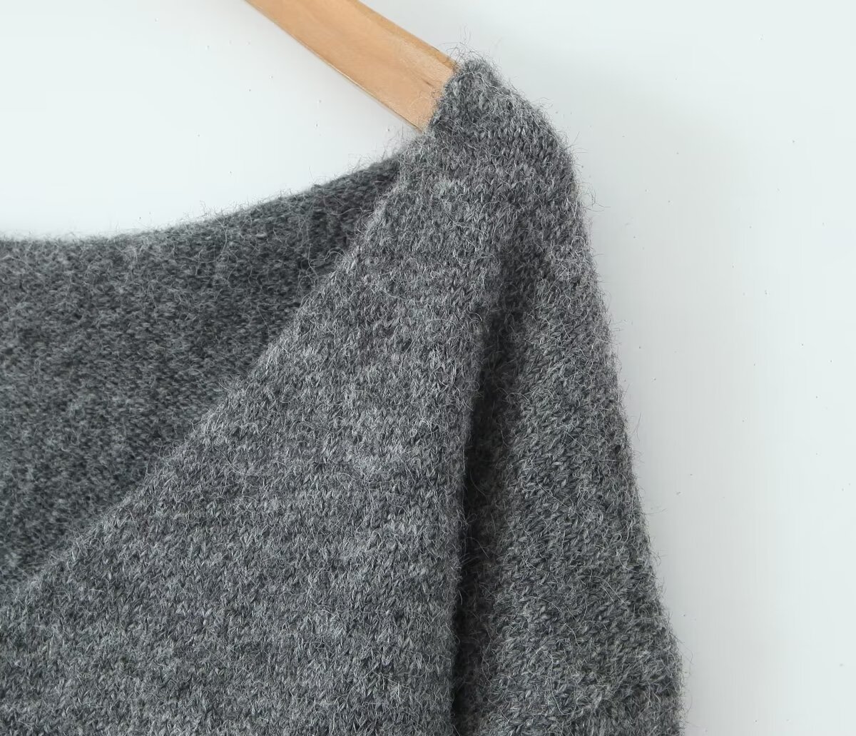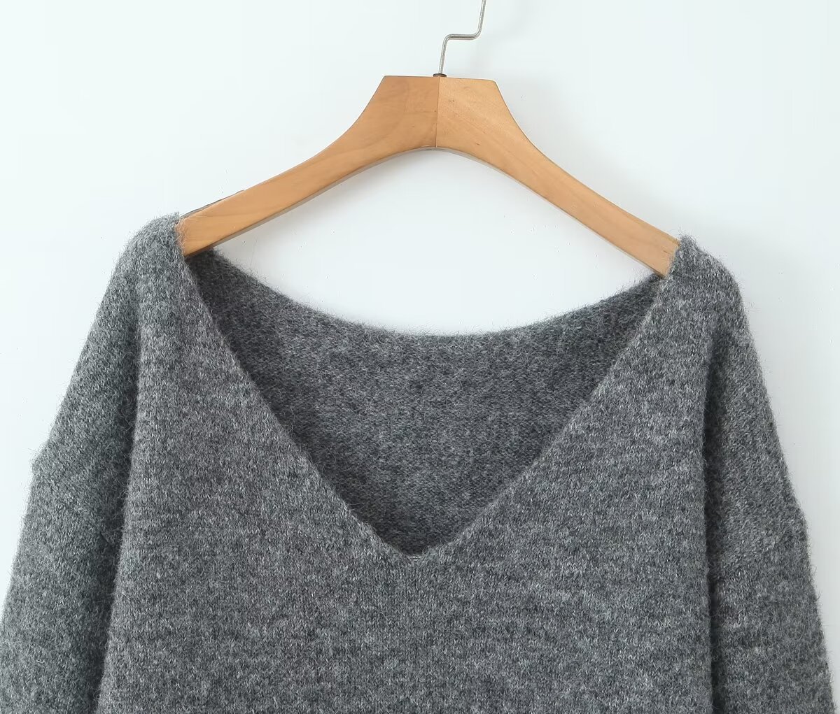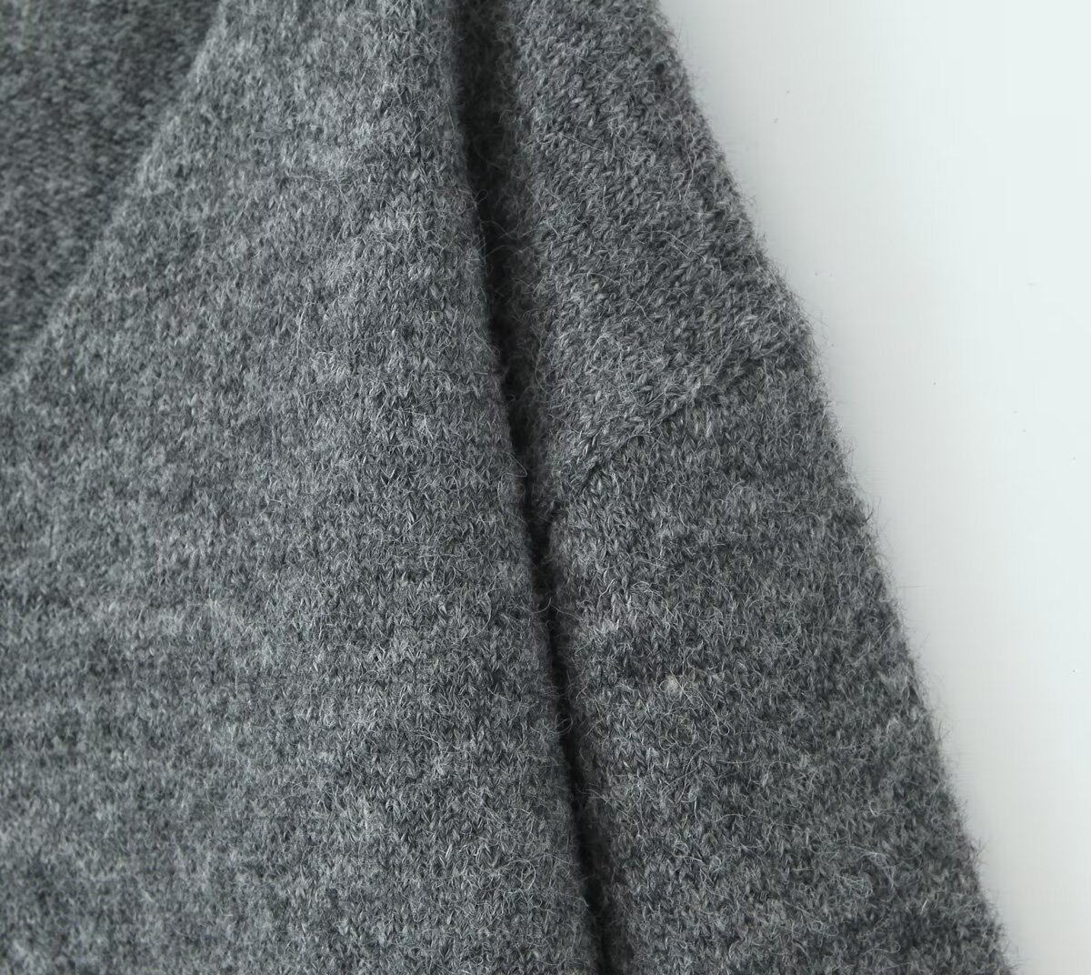 Be the first to review “Grey V-neck long sleeved knitted sweater+high waisted knitted half length long skirt set”